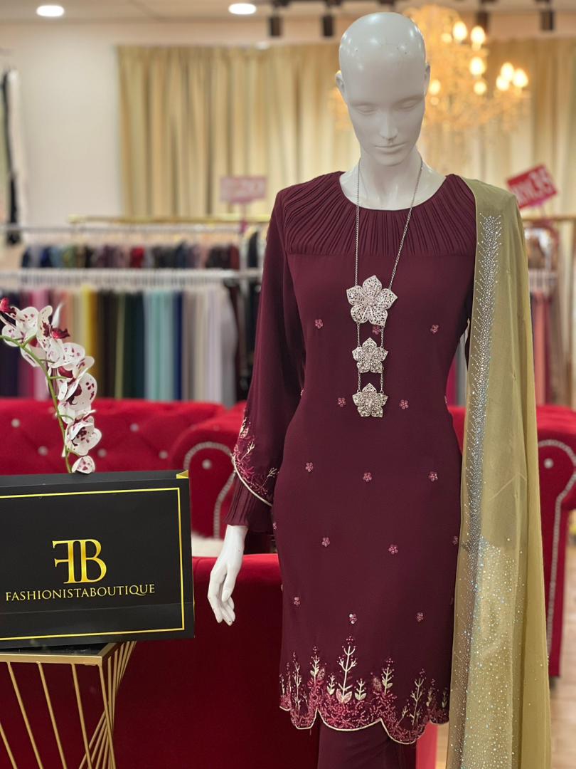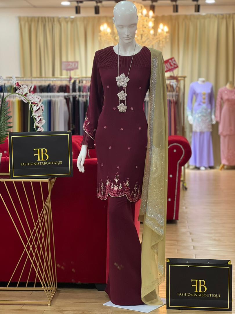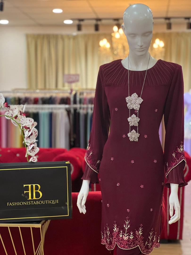 Kurung Ragelia BURGUNDY